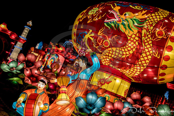 就是自貢燈會與自然環境的完美結合,它將璀璨奪目的燈布展于園林山水中,形成燈景交融、層次迷離的獨特風采。無論是精巧別致的工藝燈,還是宏偉壯觀的大型燈組,都布展于園林山水之中,湖光山色、亭臺水榭與燈融為一體,形成燈中有景、景中有燈,燈景交織的奇妙景觀。觀眾稱之為“燈的山,燈的樹,燈的水,燈的路”。波光水影、風簫聲動,燈景渾然一體,彩燈藝術的人工美與園林山水的自然美珠聯璧合,組成了瓊樓玉亭、層次迷離的美妙世界,展示了燈景渾然,千光萬彩的獨特風采!