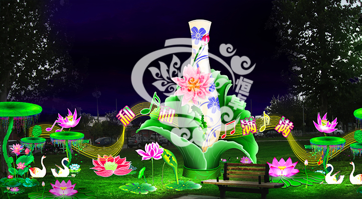 設計說明:燈組取荷花的荷字,與和諧音。花瓶居中,代表美滿。祝福大家和和滿滿,平平安安。