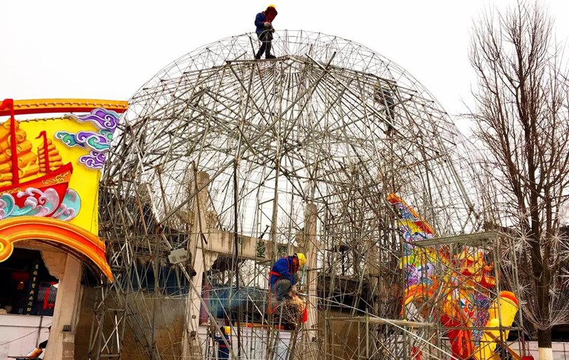 彩燈制作公司工匠們不畏嚴(yán)寒,熱情投身制燈工作,只為點(diǎn)亮南京夫子廟新春燈會(huì),為當(dāng)?shù)厝嗣袼腿ヅ男麓鹤8!?