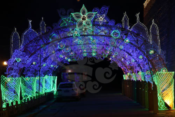 由光雕燈和音樂互相配合而創造的綜合藝術在現代藝術彩燈展示環境中十分搶眼,如利用燈光照明的明暗、色彩、強度,運用計算機控制燈光和音樂編制的程序,使音樂的節奏同步配合燈光的強弱和搖曳,從而獲得聲、光、色的綜合藝術效果,使整個彩燈展示環境顏色瞬息萬變,從而使觀賞者陶醉于一種快節奏夢幻般的超現實世界。 自貢恒卓科技制作的光雕彩燈燈會燈展燈組:采用鋼架結構、分色裱糊、內透光源、部分噴繪、美術處理。采用傳統