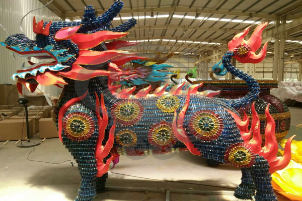自貢燈會(huì)的又一特色。瓷器,普普通通的日用品,用它裝菜、盛飯是人人都感到再自然不過(guò)的事。然而,用它來(lái)扎成燈具,就是自貢人的獨(dú)出心裁了!瓷器龍,用兩萬(wàn)多件日用瓷器餐具扎制,那顆龍牙是倒豎起來(lái)的湯勺,那飄忽的龍須,是一串串小酒杯,那蜿蜒的龍身則是一排排扣起來(lái)的青花玲瓏碗所構(gòu)成。彩燈閃爍之時(shí),仿佛龍的血液在流動(dòng)。青霉素小瓶經(jīng)過(guò)精細(xì)的清洗,再用復(fù)雜的流程配制出的彩色水灌注,就制成了晶瑩透明的“龍”、光彩照人的“孔雀”、宛若夢(mèng)境的“荷塘月色”。蠶繭是制絲的原料,用它來(lái)做燈,是自貢人民的獨(dú)創(chuàng)。經(jīng)過(guò)取蛹后的空繭,處理后粘制成栩栩栩如生的“龍”、“鳳”;竹子剝成薄如蟬翼的篾片,編制成籃子、扇子,是南方人的絕活,自貢人則將它做成了內(nèi)體透明的彩燈,地方風(fēng)情躍然而出。那玻璃吹塑的燈、扎染料扎成的燈、鍍鏌玻璃制成的燈……都表現(xiàn)出神奇的想象力和創(chuàng)造力。傳統(tǒng)工藝與現(xiàn)代科學(xué)技術(shù)的有機(jī)結(jié)合,是