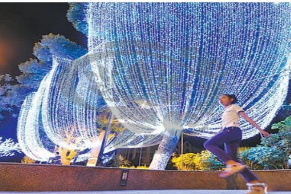 就是自貢燈會與自然環(huán)境的完美結(jié)合,它將璀璨奪目的燈布展于園林山水中,形成燈景交融、層次迷離的獨特風采。無論是精巧別致的工藝燈,還是宏偉壯觀的大型燈組,都布展于園林山水之中,湖光山色、亭臺水榭與燈融為一體,形成燈中有景、景中有燈,燈景交織的奇妙景觀。觀眾稱之為“燈的山,燈的樹,燈的水,燈的路”。波光水影、風簫聲動,燈景渾然一體,彩燈藝術(shù)的人工美與園林山水的自然美珠聯(lián)璧合,組成了瓊樓玉亭、層次迷離的美妙世界,展示了燈景渾然,千光萬彩的獨特風采!