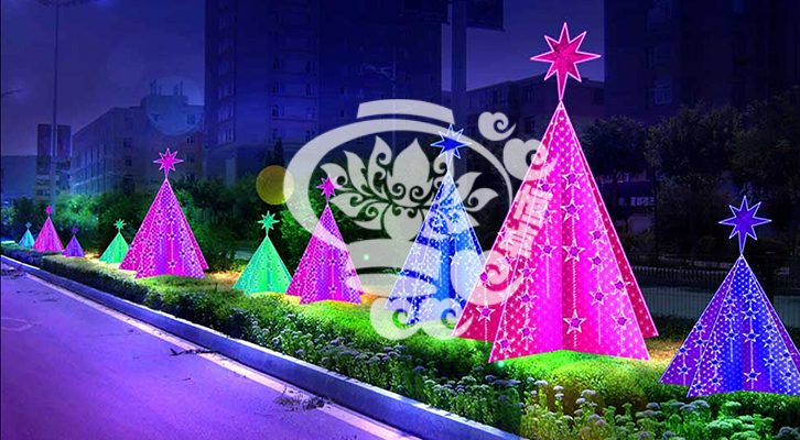 彩燈利用玻璃、冰塊、透明塑料等透光材料制成各種造型和燈具,光線從內部或外部照射,通過投射光的透射、折射、反射等物理特性的充分發揮,構成光輝燦爛的各種色光的立體藝術。也有利用小型彩色燈泡、燈珠、霓虹燈、光導纖維等燈具材料,直接構成五彩繽紛的燈光圖案畫面。近幾年運用LED 燈帶制作的各種光雕彩燈也展現在