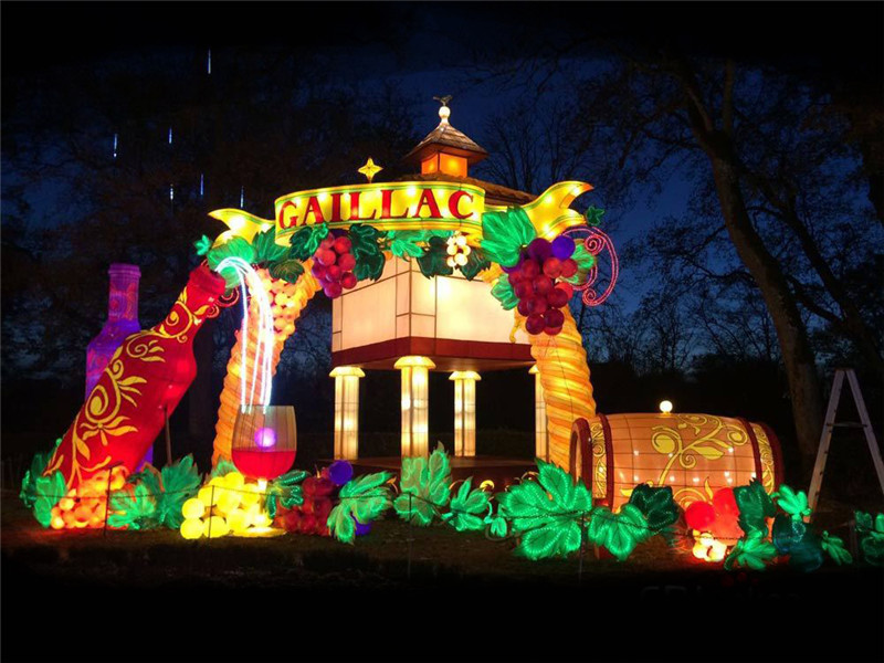 彩燈以中華傳統(tǒng)文化、加亞克歷史與釀酒文化為主題,給當(dāng)?shù)孛癖妿硪粓鰱|方視覺盛宴。