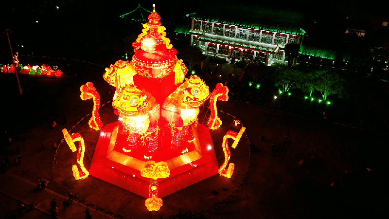 圖為航拍東湖燈會“雄獅賀歲”彩燈
