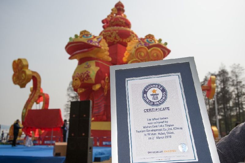 東湖 燈會大型燈組“雄獅賀歲”,以26.3米的高度,成功刷新21.15米的吉尼斯世界紀錄。2018年3月21日東湖 燈會現場,吉尼斯世界紀錄認證官現場頒發認證書,“雄獅賀歲”成為世界上最高的燈組。