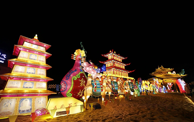 自貢燈會大師助陣敦煌月牙泉小鎮(zhèn)流光溢彩