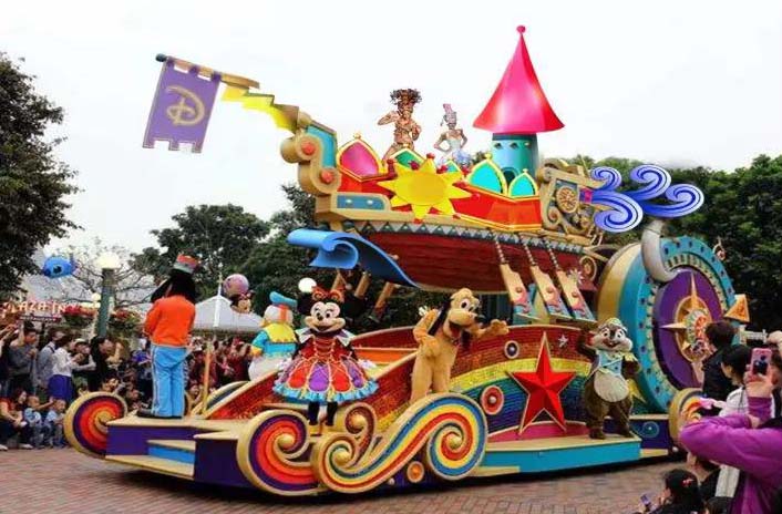 《歡樂彩虹船》長15米高7米寬6米玻璃鋼彩繪花車。此花車展現出一片在小船上狂歡的氛圍,與們園區的游玩設施相照應,配合ip人偶演員熱情的互動,使游客感覺猶如與我們的演員一起在這條彩虹船上盡情的歡樂。