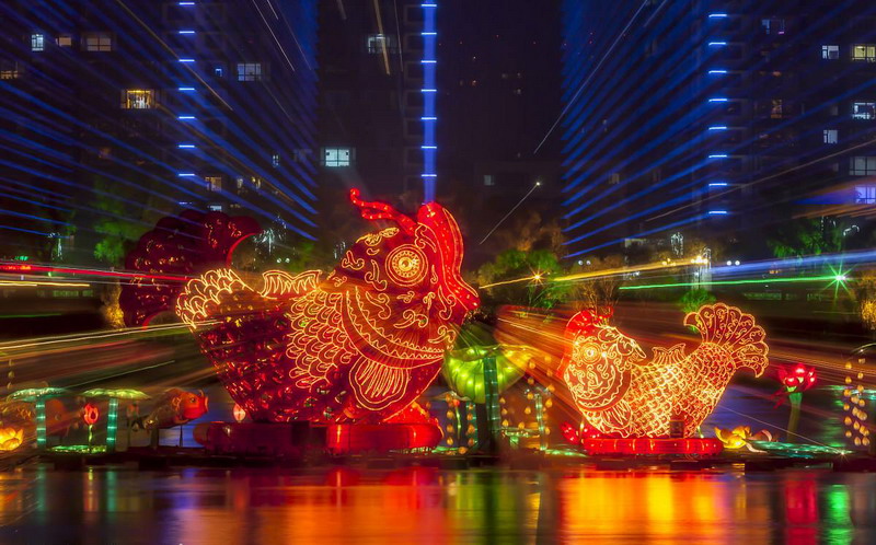 此次“魔幻中國(guó)彩燈節(jié)”的主題為野生動(dòng)物”。各種燈飾做成矯健的獵豹、跳躍的錦鯉魚(yú)以及巨大的水母和恐龍,把人們帶入一個(gè)燈光與色彩的魔幻世界。據(jù)介紹,彩燈節(jié)上每一個(gè)燈籠都出自中國(guó)