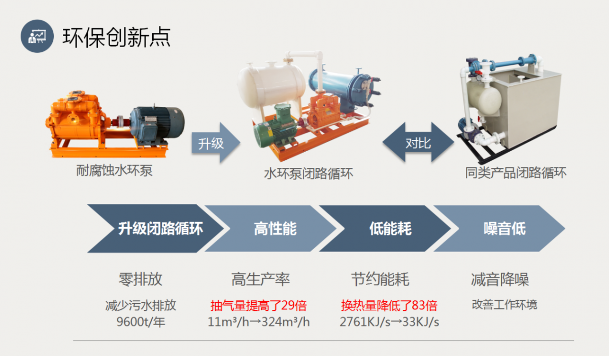 6、環保性能優越—真空泵工作液可循環使用,耗水量低至不銹鋼同類產品的1%,可有效減少污染及其治理費用,降低運行成本。廢氣密閉輸送至回收處理系統,杜絕廢水廢氣跑冒滴漏;
